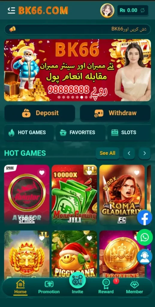 BK66 Game is considered as one of the best game in Pakistan due to its best features like it offers acctive customers support services daily login rewards users friendly interface. It also support multiple languages that user can choice and start the game. It also offers various kinds of bonuses and rewards.