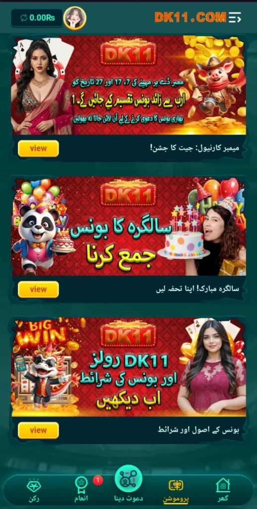 DK11 Game become one of the best and trending game in Pakistan due to its entertainment and unique potentials, it offered various features like it offer safe and secure gaming environment to play without any fairness. It Provide customer support services to sort out problem of a user. One of the trusted game among all the casino game many users are attractive due to this game because it offers secure and safe environment it contains encrypted method to protect personal and financial data of player. It encouraged player to connect and complete the various steps and win a chance to make money.